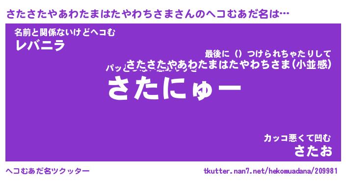 | 自動車の名前っぽいあだ名 | 『サタティマ』『サクア』『ヴィッサ』 |