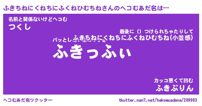 | 胡散臭い通販商品みたいなあだ名 | 『必ず成功する霊験あらたかなお札…その名も「ふきちねにくねちにふくねひむちね」』 |