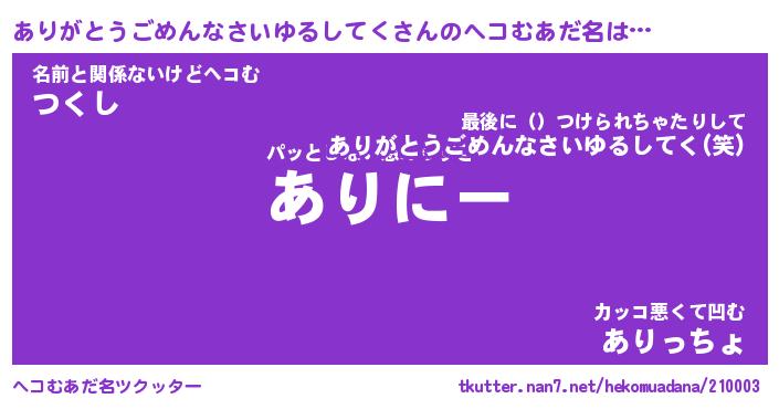 | 胡散臭い通販商品みたいなあだ名 | 『億万長者になれるブレスレット…その名も「ありがとうごめんなさいゆるしてく」』 |