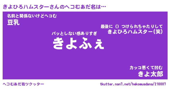 | 意味不明あだ名 | 『ペロリンきよひろハムスター』 |