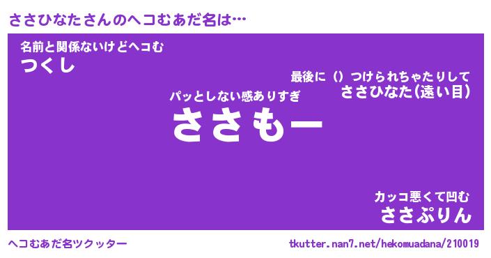 | ヒーロー風カッコイイあだ名 | 『スーパーササヒナタ』『幻影騎士ササ』 |