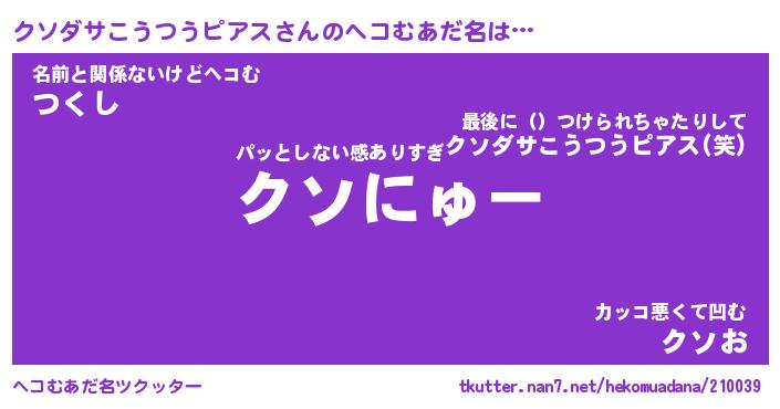 | 2回繰り返すあだ名 | 『クソクソ』『ククソソ』『ぷんぷん』 |