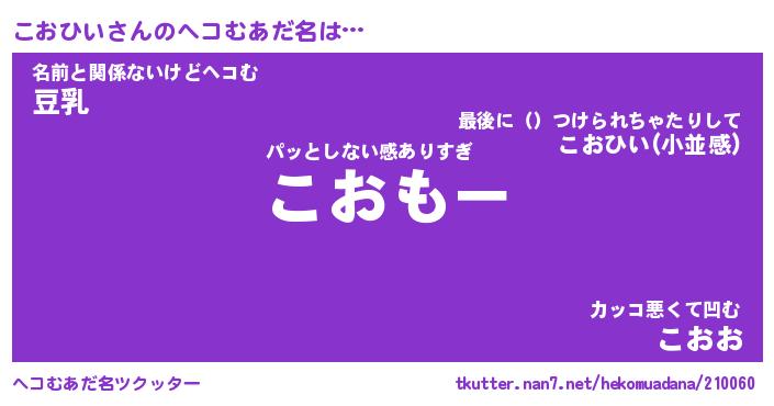 | 意味不明あだ名 | 『ペロリンこおひい』『永久保存こおひい』 |