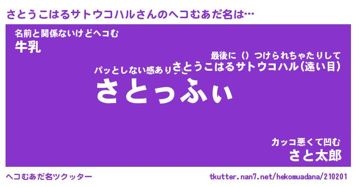 | 意味不明あだ名 | 『ペロリンさとうこはるサトウコハル』 |