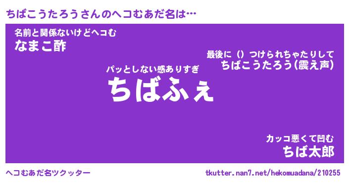 | ヒーロー風カッコイイあだ名 | 『スーパーチバコウタロウ』 |