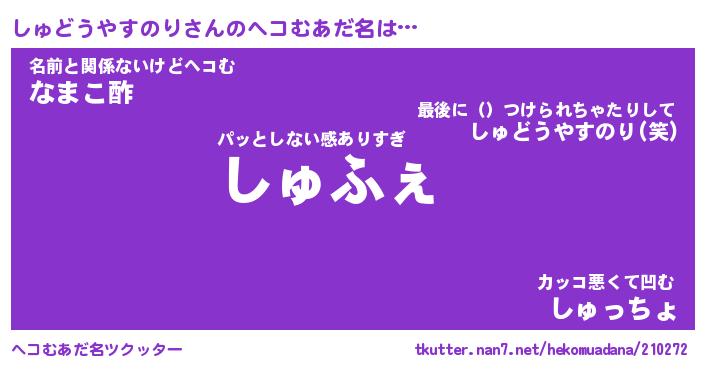 | 胡散臭い通販商品みたいなあだ名 | 『億万長者になれるブレスレット…その名も「しゅどうやすのり」』 |