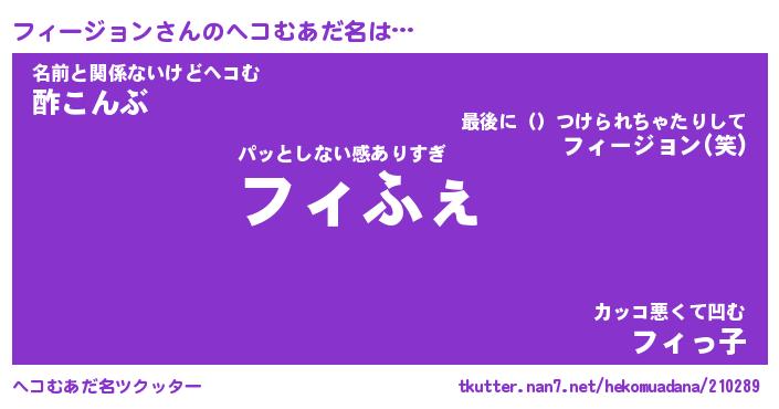| 男性向けラノベタイトル風あだ名 | 『フィージョンの憂鬱』 |