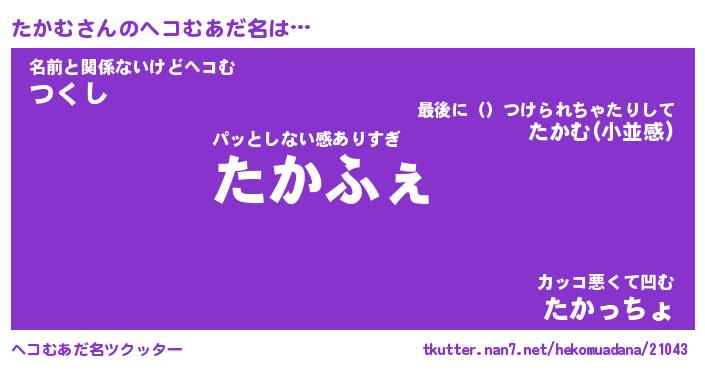 | ヒーロー風カッコイイあだ名 | 『スーパータカム』『ウルトラたかむマン』 |