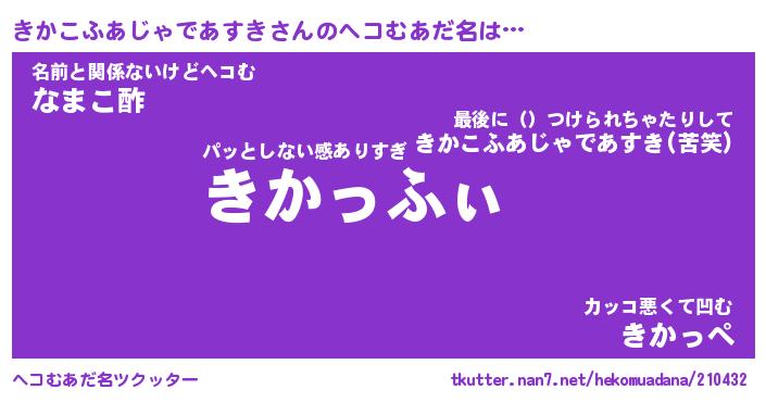 きかこふあじゃであすきさんのヘコむあだ名をツクッター!