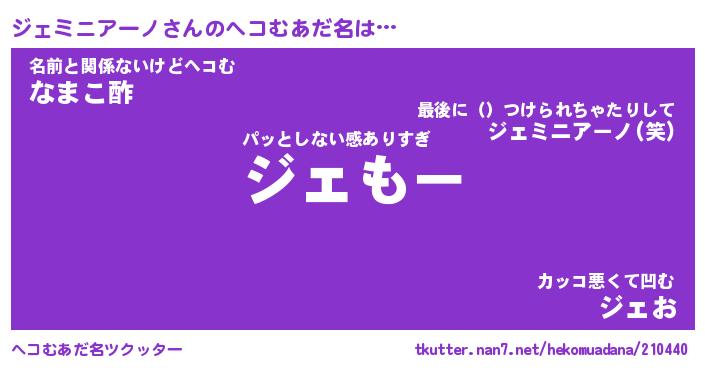 | ポケモン風あだ名 | 『ジェチュウ』『ジェミダネ』 |