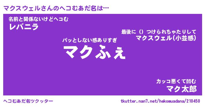 | 欧米人風あだ名 | 『マイケルマクスウェル』 |