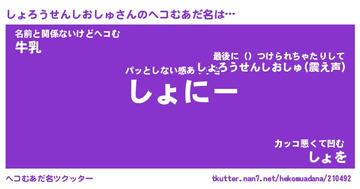 | 恥ずかしいあだ名 | 『プリティーしょろうせんしおしゅ』 |