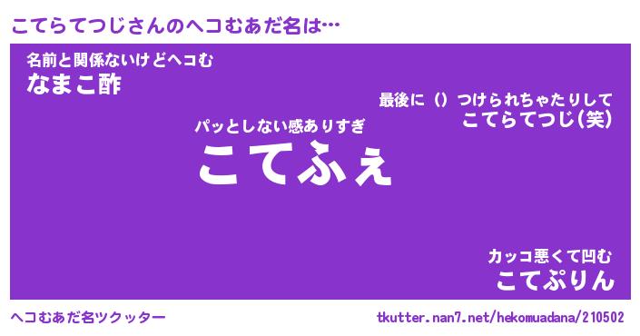 | ポケモン風あだ名 | 『コテチュウ』『コテラダネ』 |