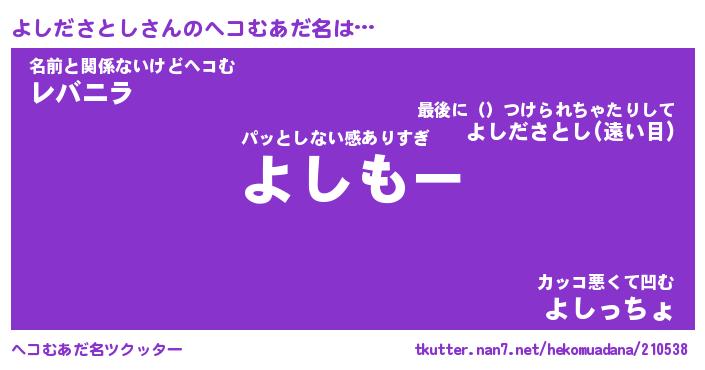 | ポケモン風あだ名 | 『ヨシチュウ』『ヨシダダネ』 |