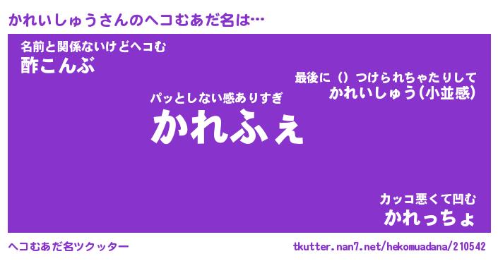 | 肩書あだ名 | 『かれいしゅうCEO』『かれいしゅう大統領』 |