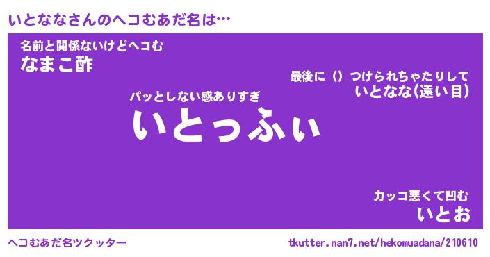 | ファンタジー風あだ名 | 『イトフェル』『エターナルイトナナー』 |