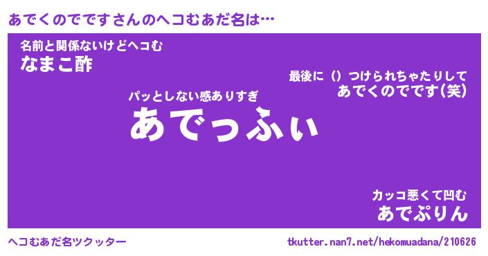 | 胡散臭い通販商品みたいなあだ名 | 『モテモテ間違いなし霊験あらたかなお札…その名も「あでくのでです」』 |