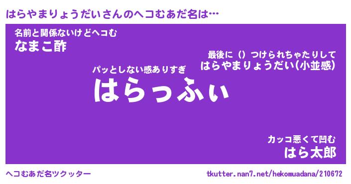 | ヒーロー風カッコイイあだ名 | 『スーパーハラヤマリョウダイ』 |