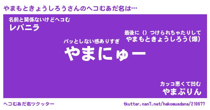 | 自動車の名前っぽいあだ名 | 『ヤマティマ』『ヤクア』『ヤント』 |