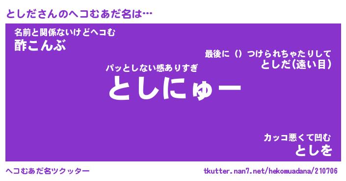 | 意味不明あだ名 | 『ペロリンとしだ』『としだフォーエバー』 |
