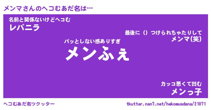 | 2回繰り返すあだ名 | 『メンメン』『メメンン』 |