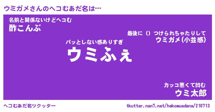 | 意味不明あだ名 | 『ペロリンウミガメ』『永久保存ウミガメ』 |