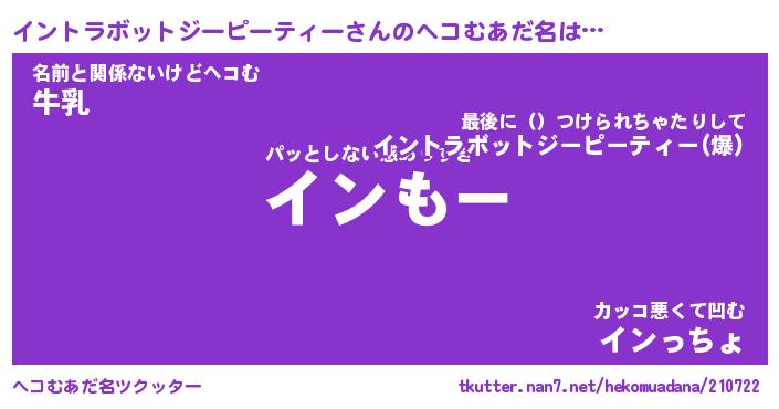 | ヒーロー風カッコイイあだ名 | 『スーパーイントラボットジーピーティー』 |