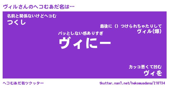 | 自動車の名前っぽいあだ名 | 『ヴィティマ』『ヴクア』『ヴィッヴ』 |