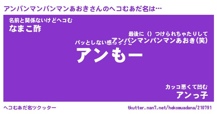 | 胡散臭い通販商品みたいなあだ名 | 『億万長者になれる水晶球…その名も「アンパンマンパンマンあおき」』 |