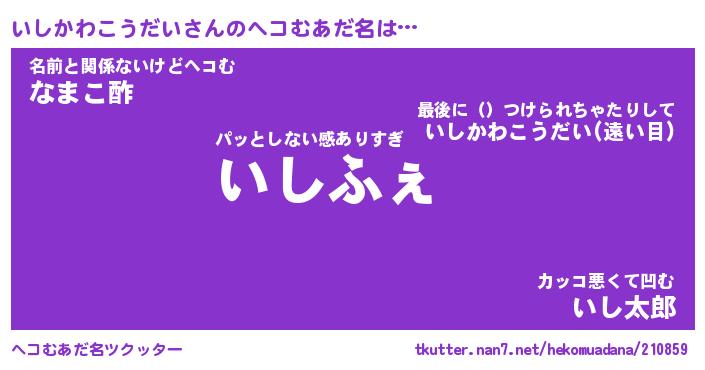 | 男性向けラノベタイトル風あだ名 | 『いしかわこうだいの憂鬱』 |