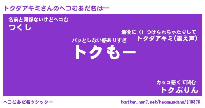 | ヒーロー風カッコイイあだ名 | 『スーパートクダアキミ』『銀牙騎士トク』 |