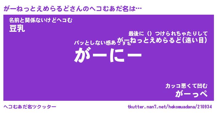 | 男性向けラノベタイトル風あだ名 | 『がーねっとえめらるどの憂鬱』 |
