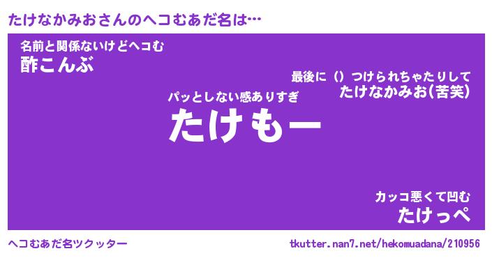 | 胡散臭い通販商品みたいなあだ名 | 『必ず成功する霊験あらたかなお札…その名も「たけなかみお」』 |
