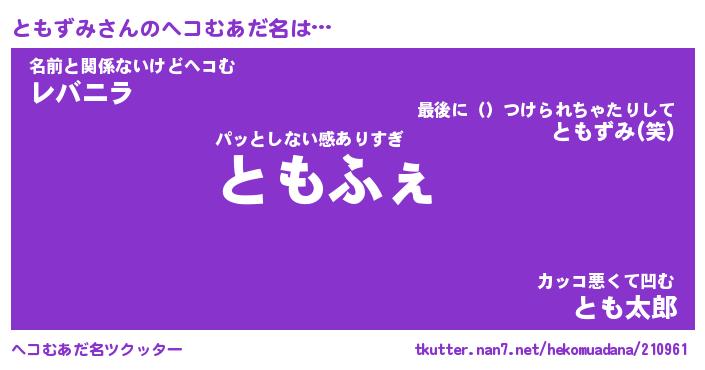 | ファンタジー風あだ名 | 『トモフェル』『エターナルトモズミー』 |