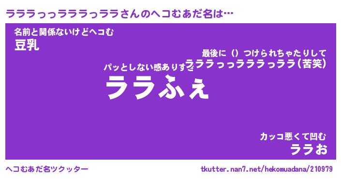 | 男性向けラノベタイトル風あだ名 | 『ラララっっラララっララの憂鬱』 |
