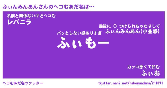 | 男性向けラノベタイトル風あだ名 | 『フィンミンアンアートオンライン』 |