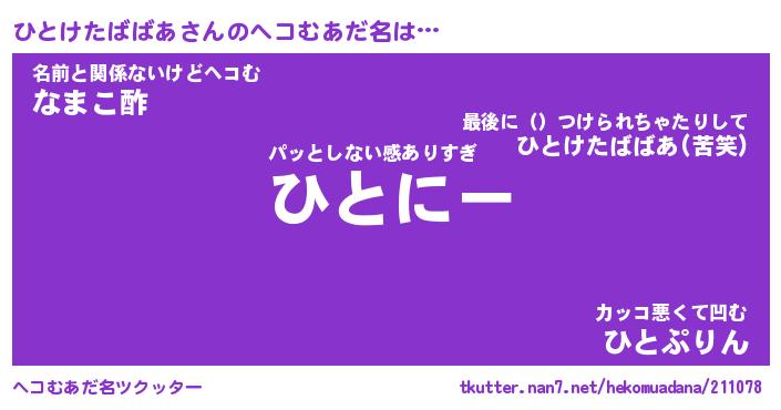 | ヒーロー風カッコイイあだ名 | 『スーパーヒトケタババア』 |