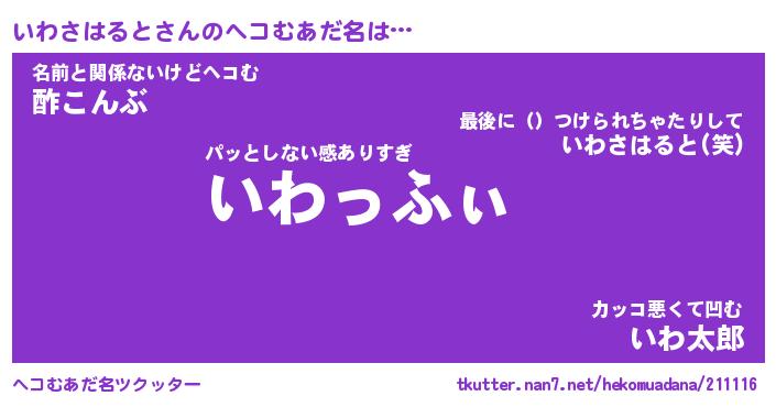 | ヒーロー風カッコイイあだ名 | 『スーパーイワサハルト』『天弓騎士イワ』 |