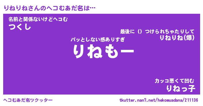 | 意味不明あだ名 | 『ペロリンりねりね』『永久保存りねりね』 |