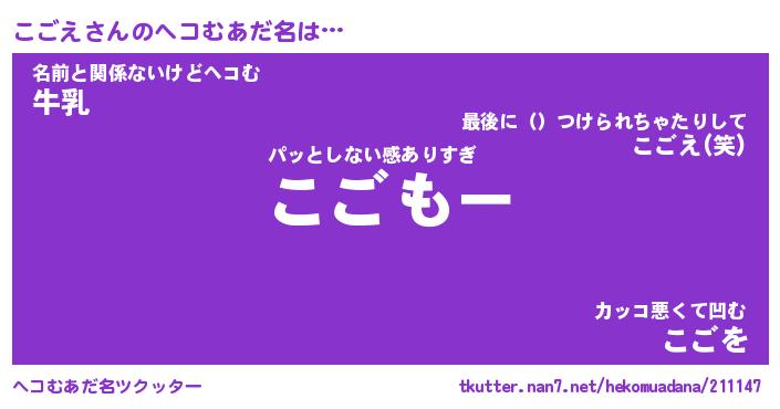 | ツイッター | こごえさんのツイッターID『namakemono_kun』 |