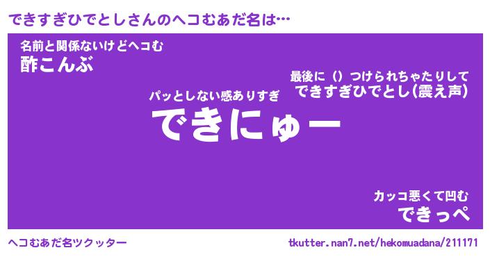| 欧米人風あだ名 | 『マイケルできすぎひでとし』 |