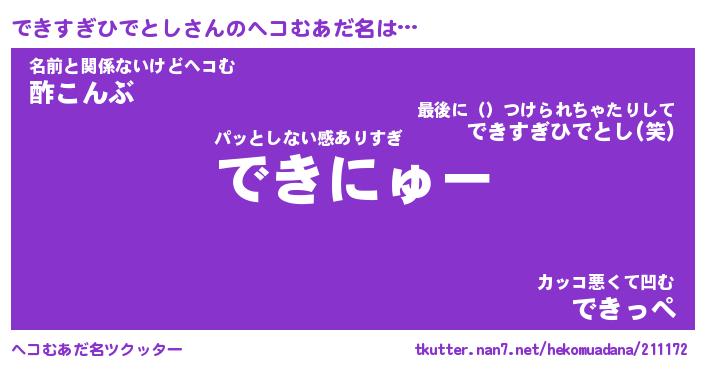 | 意味不明あだ名 | 『ペロリンできすぎひでとし』 |