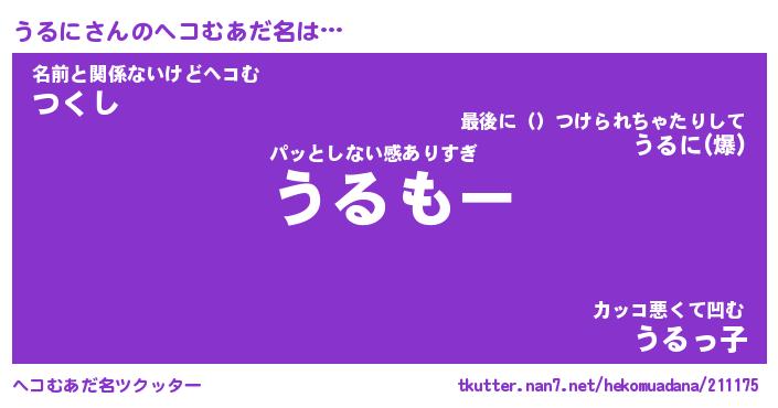 | 意味不明あだ名 | 『ペロリンうるに』『うるにフォーエバー』 |
