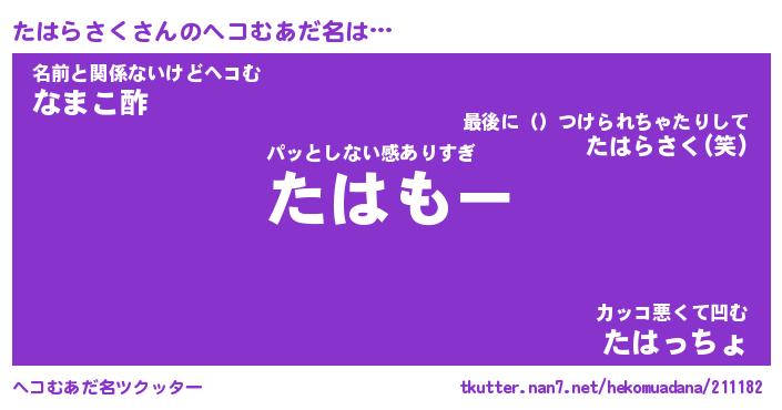 | ファンタジー風あだ名 | 『タハフェル』『エターナルタハラサクー』 |