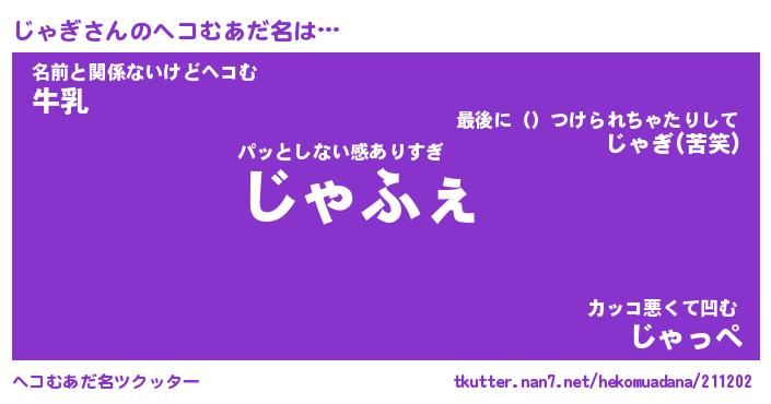 | 胡散臭い通販商品みたいなあだ名 | 『億万長者になれる水晶球…その名も「じゃぎ」』 |