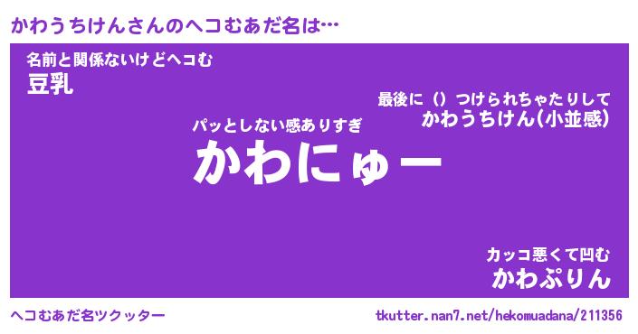 | ヒーロー風カッコイイあだ名 | 『スーパーカワウチケン』『黄金騎士カワ』 |