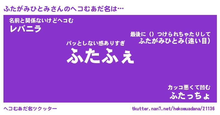 | 恥ずかしいあだ名 | 『プリティーふたがみひとみ』『ふたちん』 |