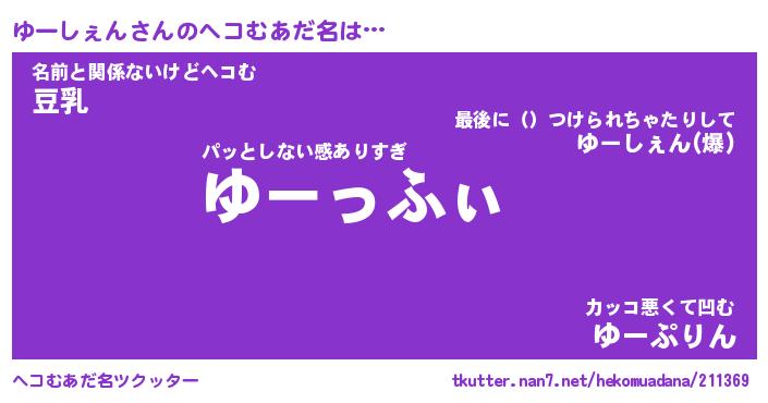 | 男性向けラノベタイトル風あだ名 | 『ゆーしぇんの憂鬱』 |