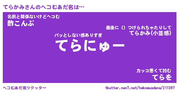 | 2回繰り返すあだ名 | 『てらてら』『ててらら』『げらげら』 |