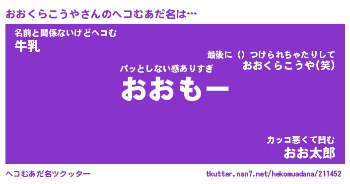 | ヒーロー風カッコイイあだ名 | 『スーパーオオクラコウヤ』 |